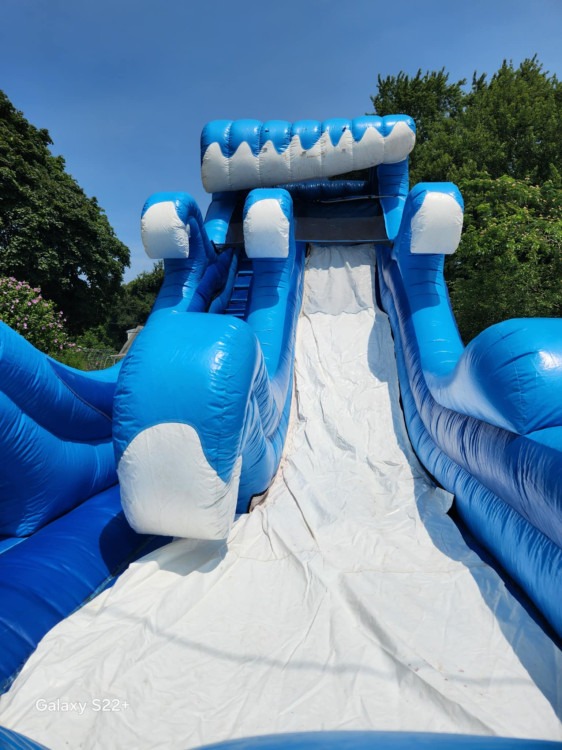 Dive into fun with the 18' Coral Bay Waterslide—a vibrant, inflatable water slide designed to bring a splash of aquatic excitement to any event. Its colorful coral reef theme sets the stage for an exhilarating ride, perfect for cooling off and making waves at parties or outdoor gatherings. Experience a mix of adventure and safety as you slide into a pool of summer thrills!